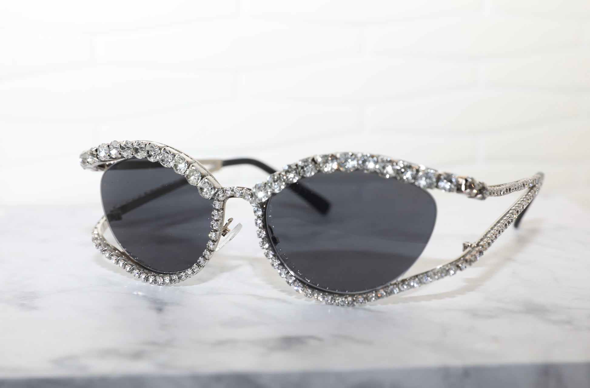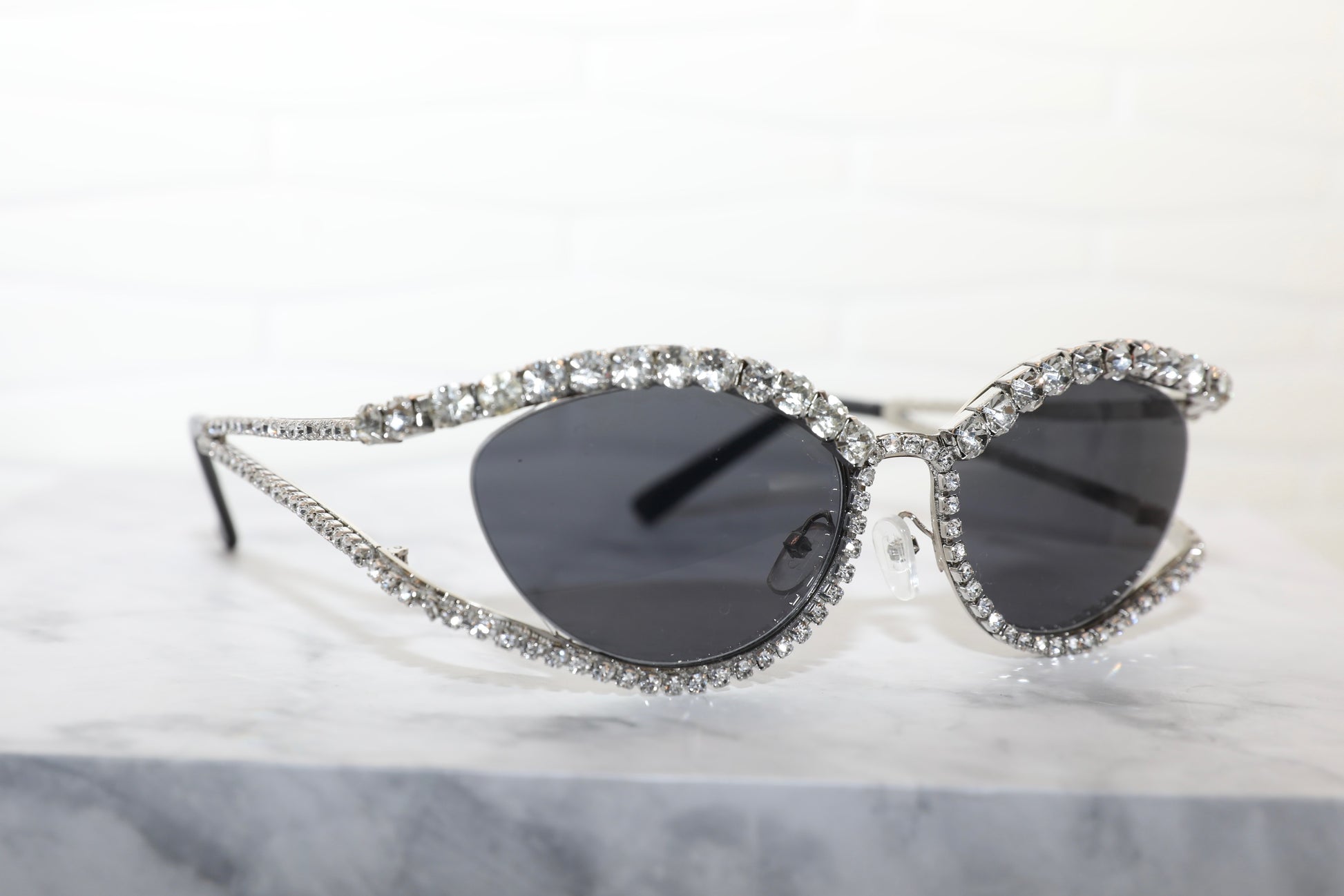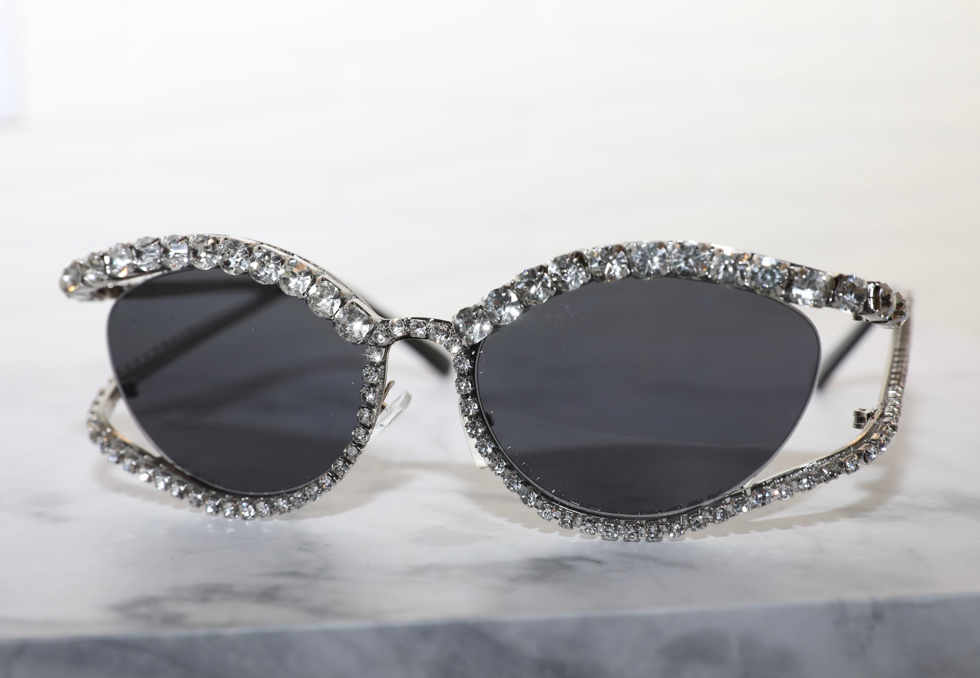 Diamond encrusted cat eye frame.
